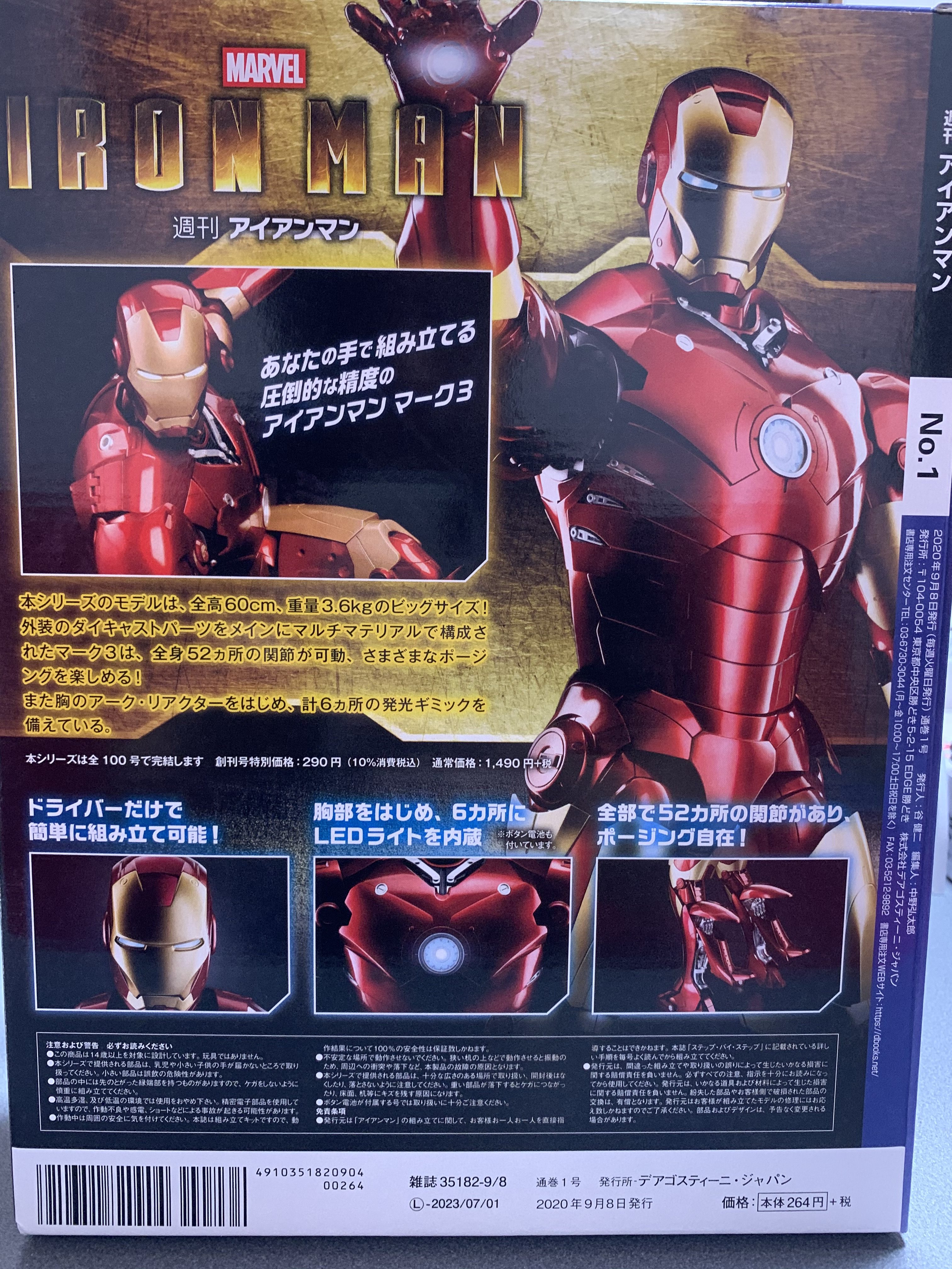創刊号は、アイアンマンのフェイスパーツと専用のドライバーが入っていました。