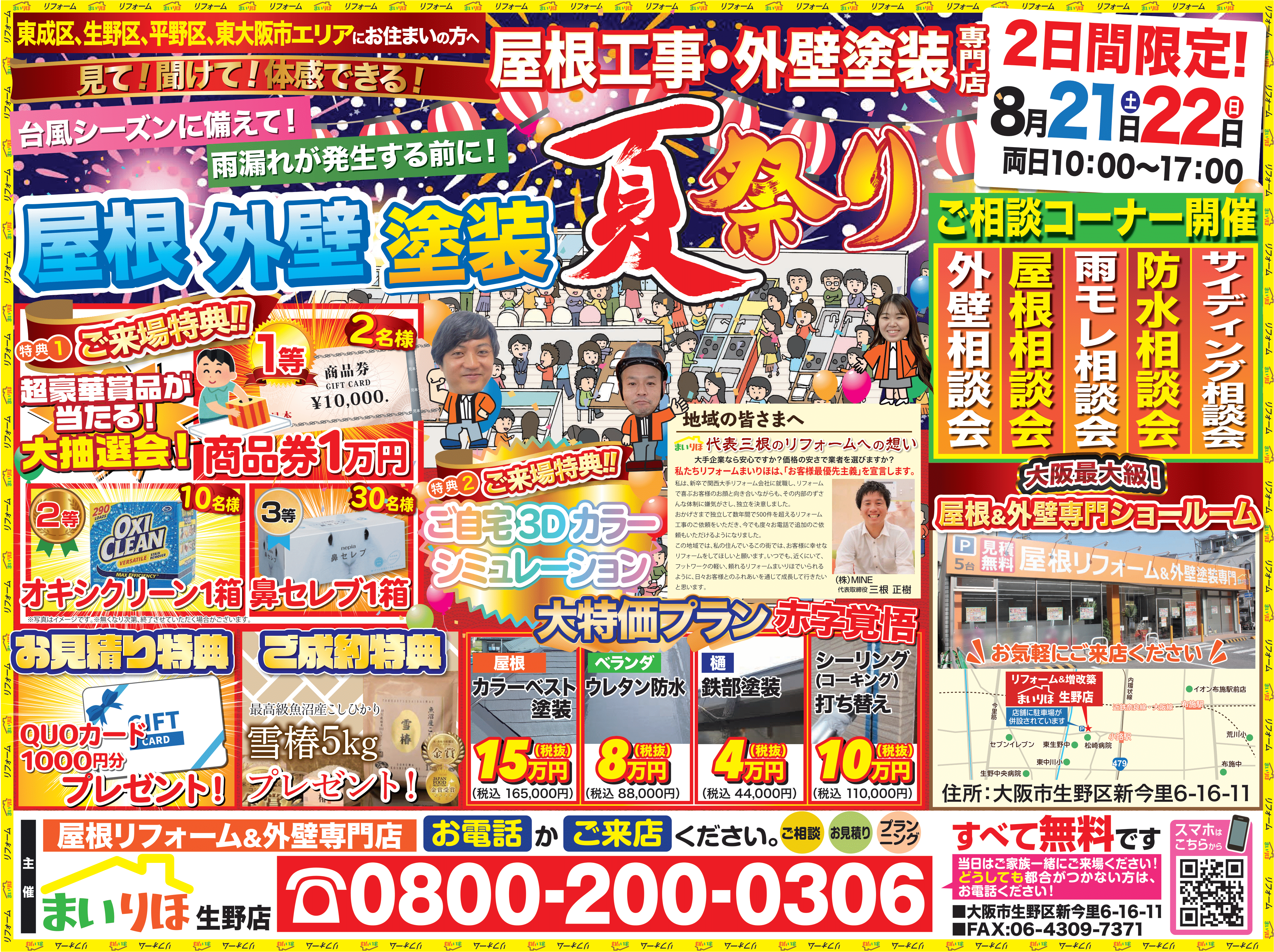 皆様こんにちは♪ リフォームまいりほ東住吉店 営業担当の吉川です。 あっという間に夏も終わりますね^^; 今年の雨は…